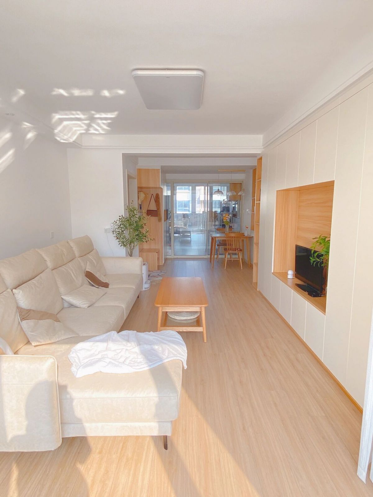 主页 > 精彩案例>69㎡客餐厅一体|奶油原木风,附户型图
