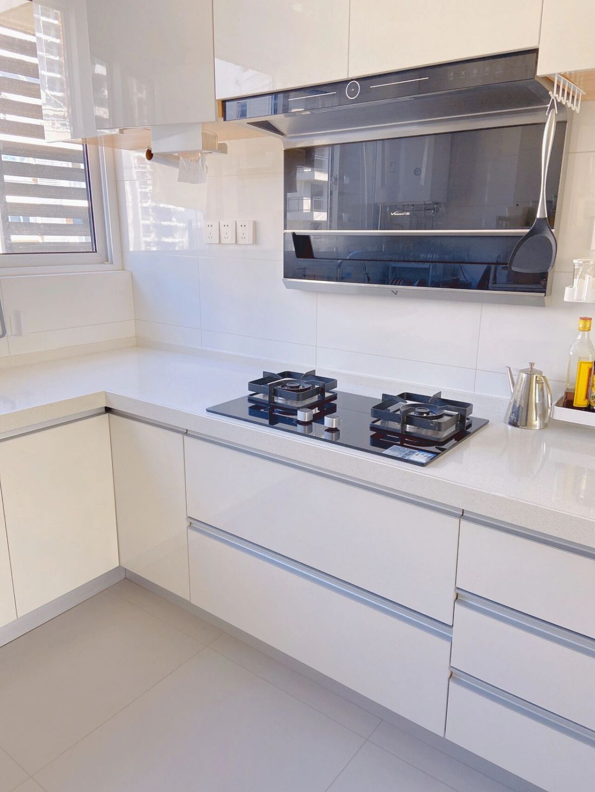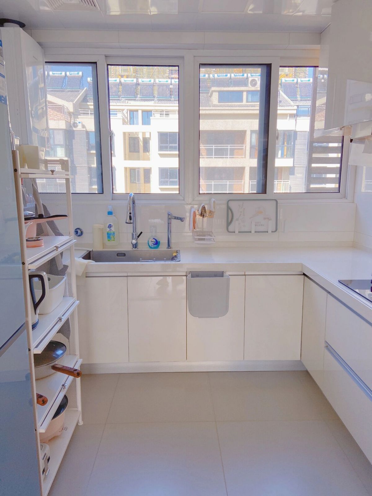 • 套内69平米,硬装很简单,整屋都是大白墙,木地板通铺,简单的双眼皮吊顶 客餐厅一体化的设计太适合小户型了 厨房北边是个北阳台,砸掉了把厨房北移 用柜子延长了墙体,挤出了三四平米的小餐厅